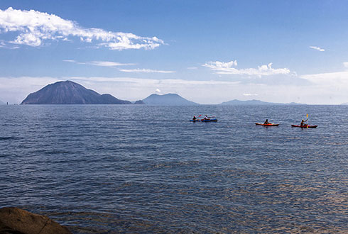 Figura 3. Immagine aerea dell’isola di Vulcano. Si noti la prossimità del centro abitato al cratere. Fonte: Prof. G. Luongo.
