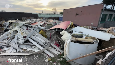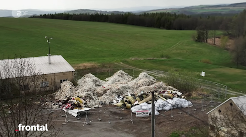 Frontal riferisce di discariche illegali con resti di turbine eoliche tedesche nella Repubblica Ceca. Immagine tratta dal video: https://www.zdfheute.de/video/frontal/nachgehakt-windrad-schrott-windkraftanlage-tschechien-illegale-muellentsorgung-100.html